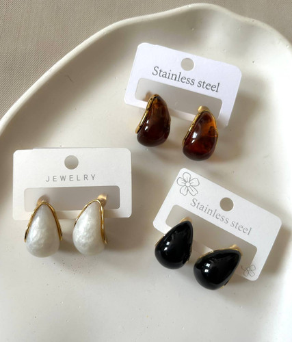 گوشواره صدفی رنگ ثابت و ضد حساسیت