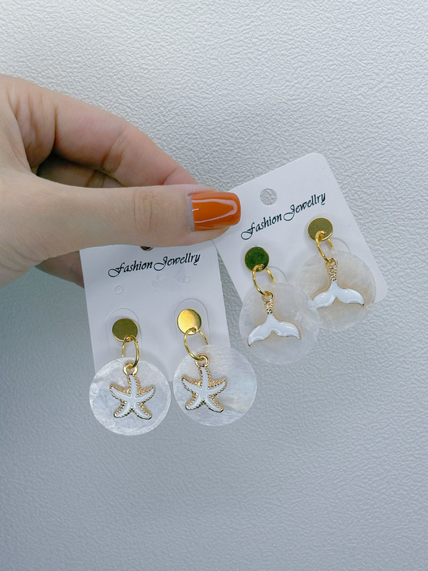 گوشواره صدفی رنگ ثابت و ضد حساسیت