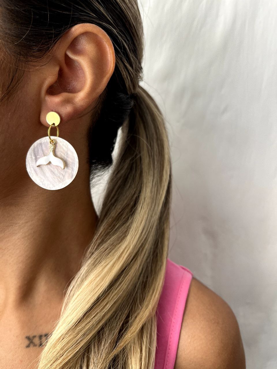 گوشواره صدفی رنگ ثابت و ضد حساسیت